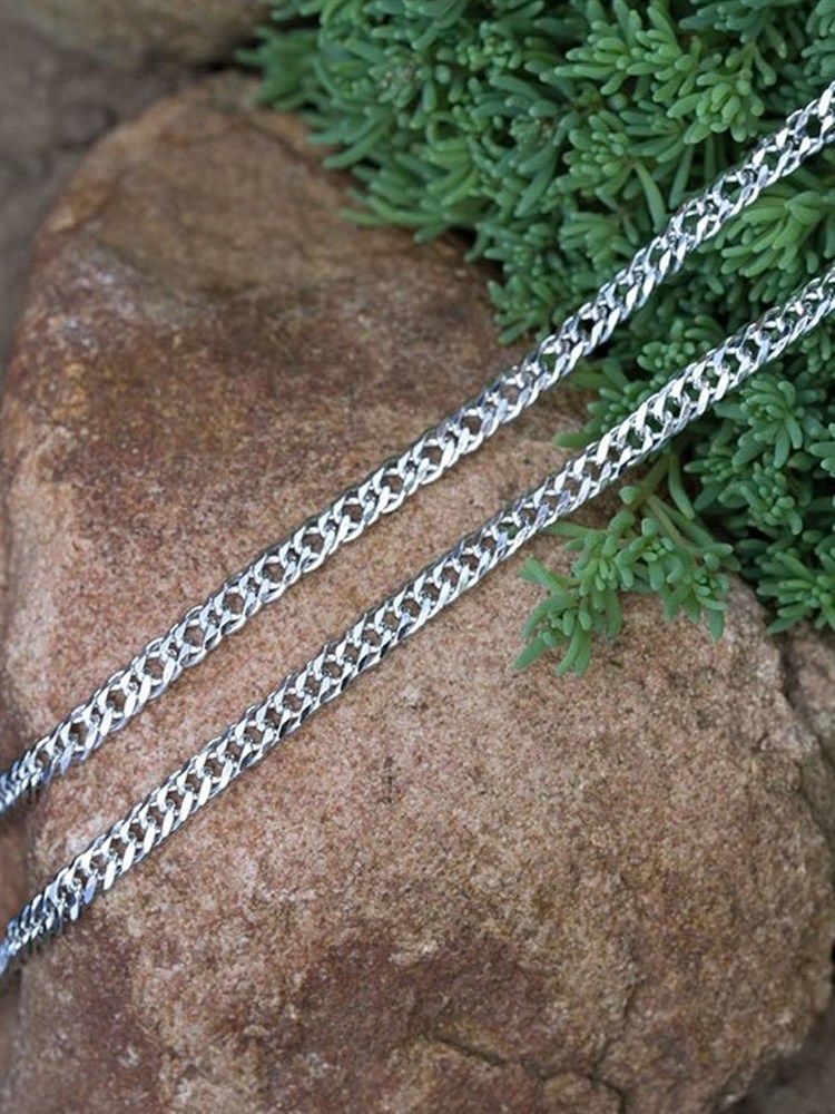 Серебряная цепь “Двойной ромб с алмазной огранкой 8 граней” 0408R_Ch, родирование